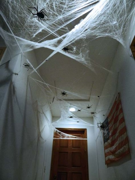 - Use LED lights or spotlights to highlight the cobwebs at night, making them appear more eerie.