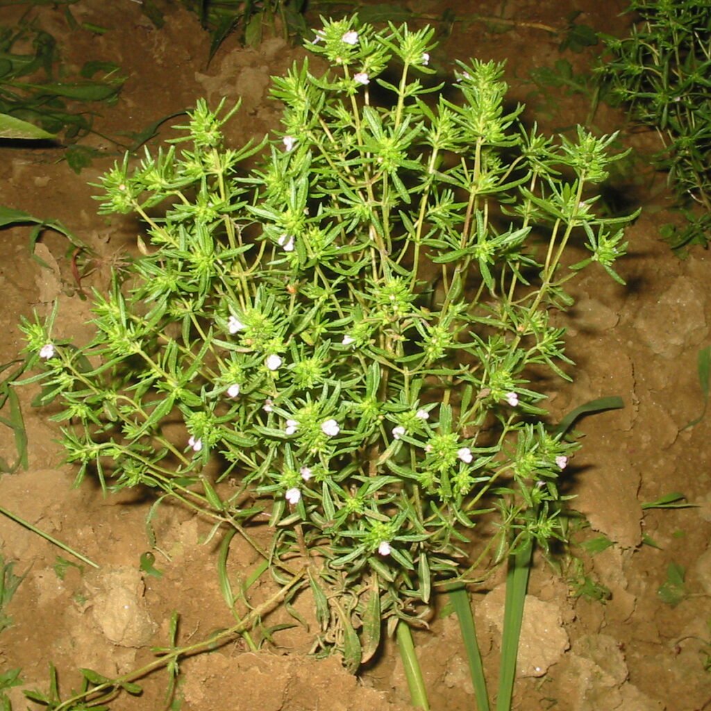 Summer savory is an annual herb from the mint family (Lamiaceae), related to thyme, oregano, and rosemary. It grows about 12 to 18 inches tall with slender stems, delicate green leaves, and small white or lilac flowers that bloom from midsummer through early fall.